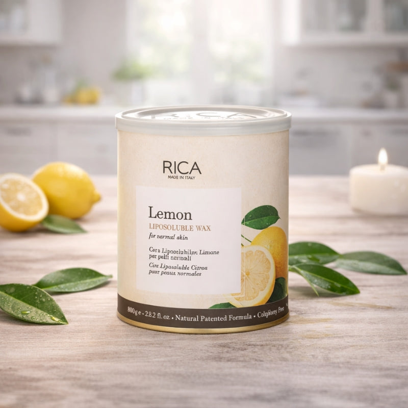 The Rica Lemon Liposoluble Wax for Normal Skin is a high-quality Italian liposoluble depilatory wax formulated for normal skin. Enriched with natural lemon extracts, this gentle wax combines powerful hair removal with refreshing and purifying properties. Lemon helps brighten the skin, reduce dullness, and provide a light, uplifting citrus scent. The colophony-free patented formula ensures strong adhesion to hair for clean removal from the root, melts at a low temperature for comfortable application, and spreads easily in a thin layer. Ideal for professional salon waxing or careful at-home use on legs, arms, underarms, bikini line, and other areas, it minimises post-wax irritation and leaves skin feeling fresh, smooth, and revitalised. The bright lemon fragrance makes the waxing ritual more enjoyable and skin-friendly.